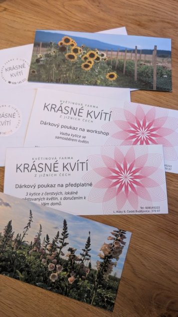 Nabízíme dárkové poukazy na květinové předplatné a na workshopy u nás na farmě. Jsou vhodné pro milovníky květin, tvoření, přírody a pro každého, kdo chce zažít něco krásného a klidného.